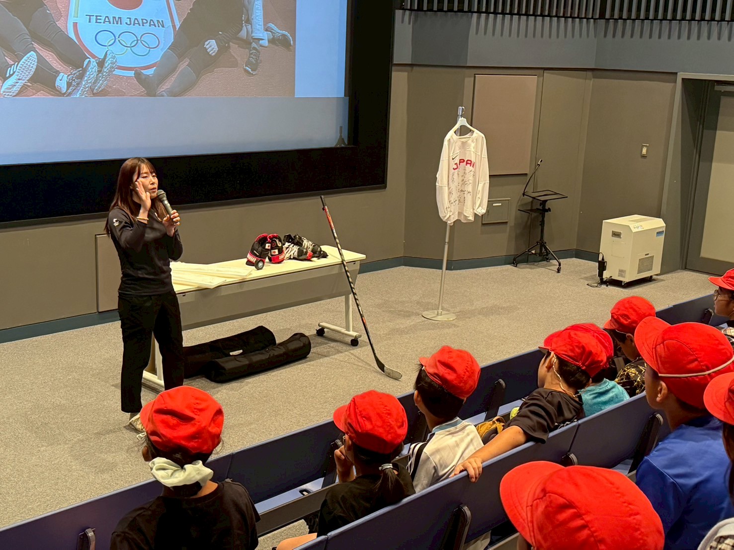 オリパラ教育 藤野南小学校のオリパラ教育 2025.09.16 藤野南小学校3年生が札幌オリンピックミュージアムに来てくれました。講師はアイスホッケーオリンピアンに大滝知香さん、初めての講義でしたが、とても素敵な講義でした!